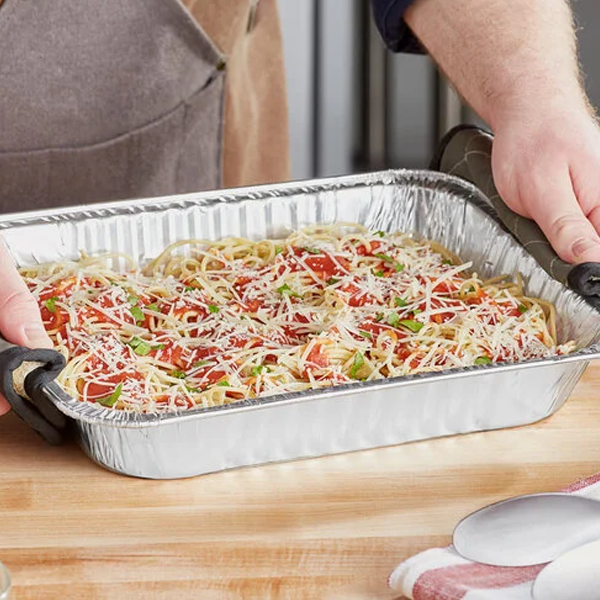 This half-size medium steam pan, made from durable 38-gauge aluminum foil, is ideal for cooking, storing, and serving a variety of dishes. With a depth of 2 3/16 inches, it maintains food temperature effectively, making it perfect for banquets and large events. Designed to withstand both freezer and oven temperatures, it offers versatile use in food service environments. Additionally, this pan is recyclable under certain programs, supporting environmentally conscious operations. Sold in a case of 100, it provides reliable performance for professional catering needs.